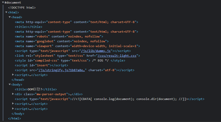 이렇게 말하니 더 어렵고 헷갈리게 느껴질수도 있을 것같은데 아래 HTML 구조와 DOM구조를 보라.